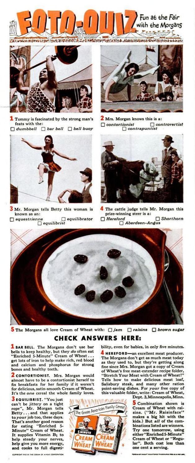 See also “Stretch Your Meat With Cream Of Wheat” — a booklet offered in the same year via advertisements in Life magazine and elsewhere: